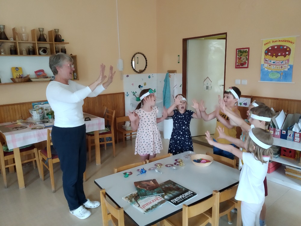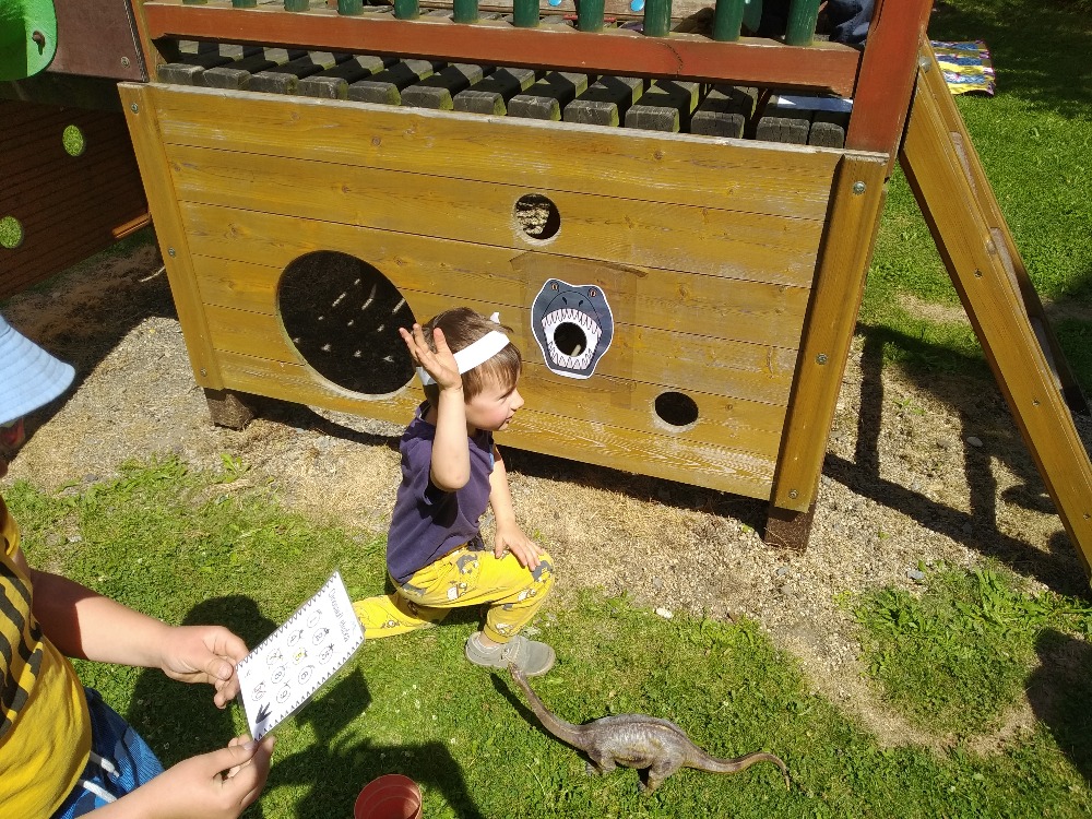 Dinosauří stezka - Stezka odvahy - Skládání kostry - archeologie - Krmení dinosaurů, poznávání bylin - Slalom dinosauří dráp - Obřadní indiánská písnička - Poznávání dinosaurů - Výroba čelenky - Dinosauří země - A další