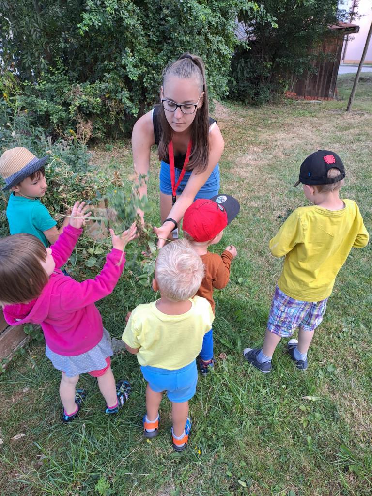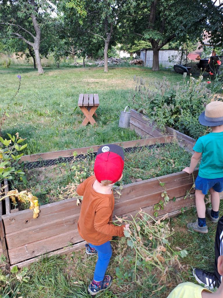 MŠ - Sklízíme a vytrháváme hrášek v Jabloňové zahradě