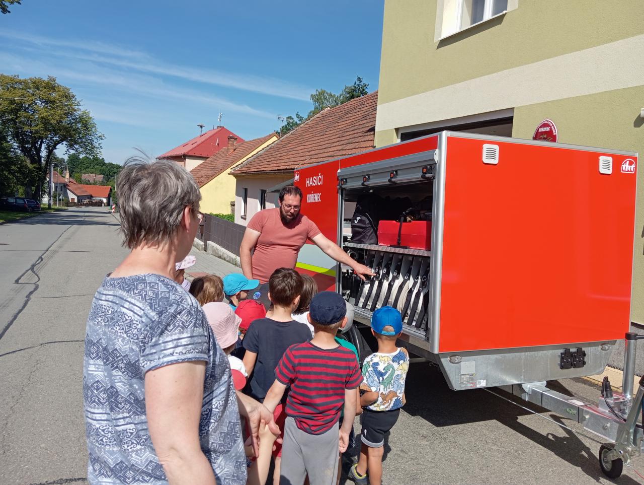 Prohlídka nového hasičského vozíku.